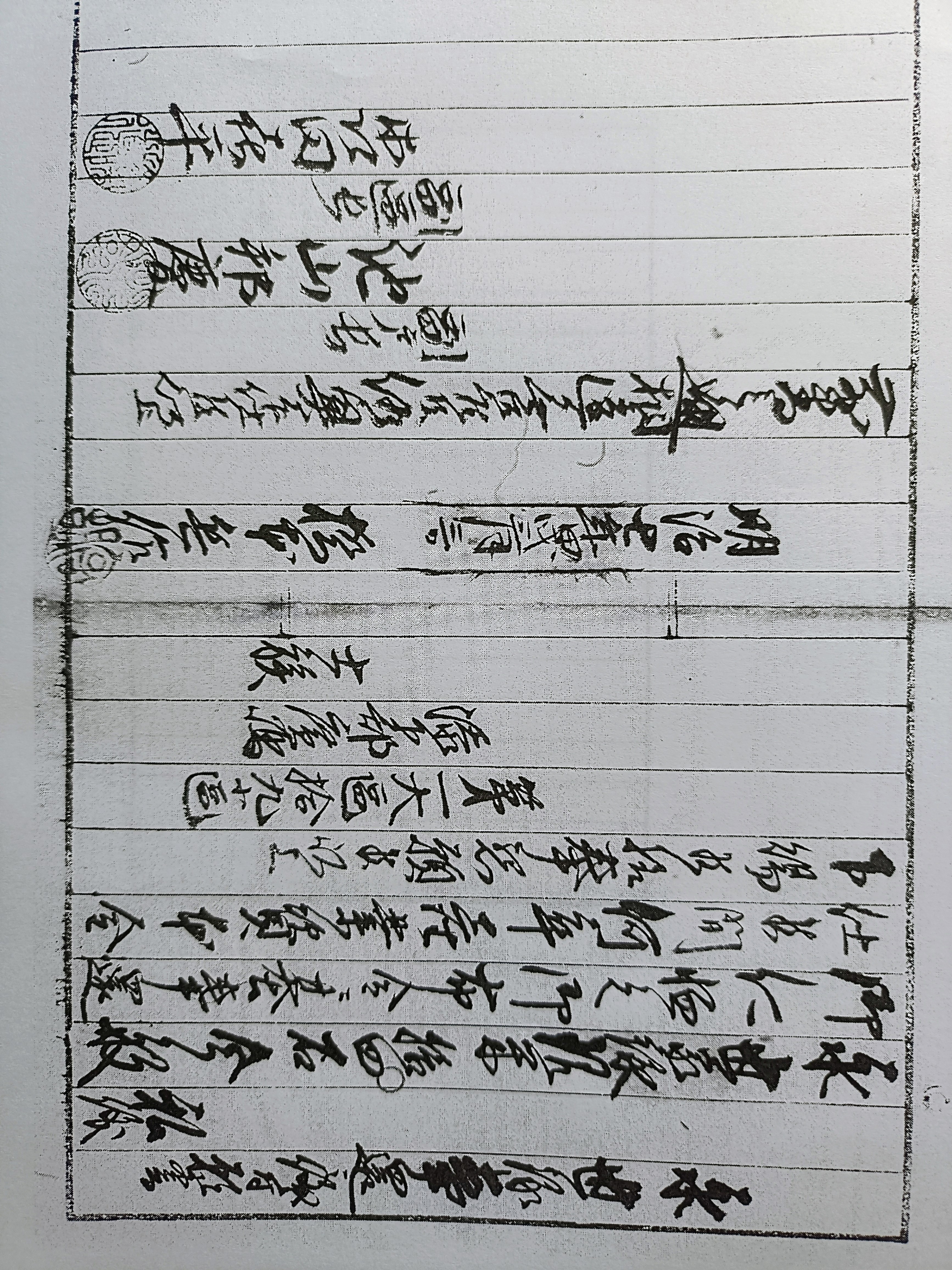 大和志料 中巻 改訂(285項、国会図書館デジタルコレクション有り、出版年月日1944請求記号291.65-N636y-(t)、国会図書館のページへ )より引用→ 沽却 水田地作之事 合壹段者 地子壹石 宇東之前案燈之井尻上切在之在大和國山邊郡白石庄內有之 限四至 右件之水田地作共者松若丸重代相傳之私領也然者要用直米五石十合ニカキリテ加地子反米共ニッケテ永代多田之如一房方へ賣渡事實正也但五斗一石ッ、ノ地子ヲ可進上候若懈怠、、何時三テモ此作ヲ 離タレ可」申候向後更二他妨アルマシク候仍爲後日、證文如件。 至德四年丁卯三月十四日 白石東松若丸 内口方・・・ 請人白石西室…………………………花押 賣渡 東山內針ヶ別庄水間料足事 合壹貫贰百文者 右福住重代相傳之爲私領公方所役執沙汰申者也雖然依、有要用,相當錢伍貫文限永代奉」賣渡之發志院順堯御房事明白也於向後更附子々孫々不可』有違亂煩候拾ヶ年ノ內本錢買返申候者自、元不可」有子細”候也馳過契約之年季候者可流申上,者不可及仍爲後日、代支證沾 沽却水田作主職事 合四段者 加地子 在大和國山邊都南殿庄 四至一段二町田 一反 一反瀧ヶ本ノ下り 一反 萬難公事等者下作之沙汰也 右件水田作主職者南殿甲岳之九郎先祖相傳之私領也多年知行之間更無他妨而依、有要用限直米六石山內天神講方奉沽却」事實正也若此作主違亂妨并未進懈怠□□□時者同名之内ヲヲミトノ中切一反ノ作リヲ質物二入是ニ於テ違□□□□本米返申候へシ但當年ョリ八年九年十年目二テ此三ヶ年ノ中ニ本米ヲモテ□返申候若此兩三年ヲスキ候、無別流又奉」流候へ夕依而如件應安二年三月八日 南殿甲岳,九郎 ユッリワタス 作主職事 合壹段者 在大和國山邊郡白石庄内大坪/大道ノ西ノウラ 四至限 右件田者辰二郎方ョリ與一カイトリテ候ヘトモ子細アルニョテ米伍斗十合間辰二郎カウリ交アインヘラ此作主職ヲ多田殿へ永代ユッリワタス去出之狀如件 康曆元年紀九月 白石庄,與一花押