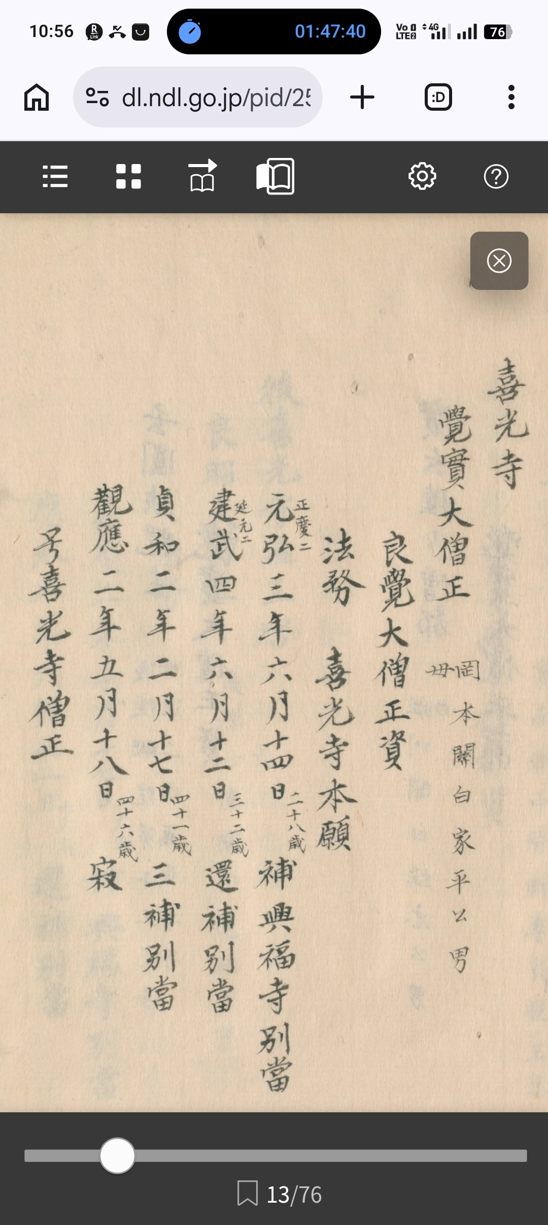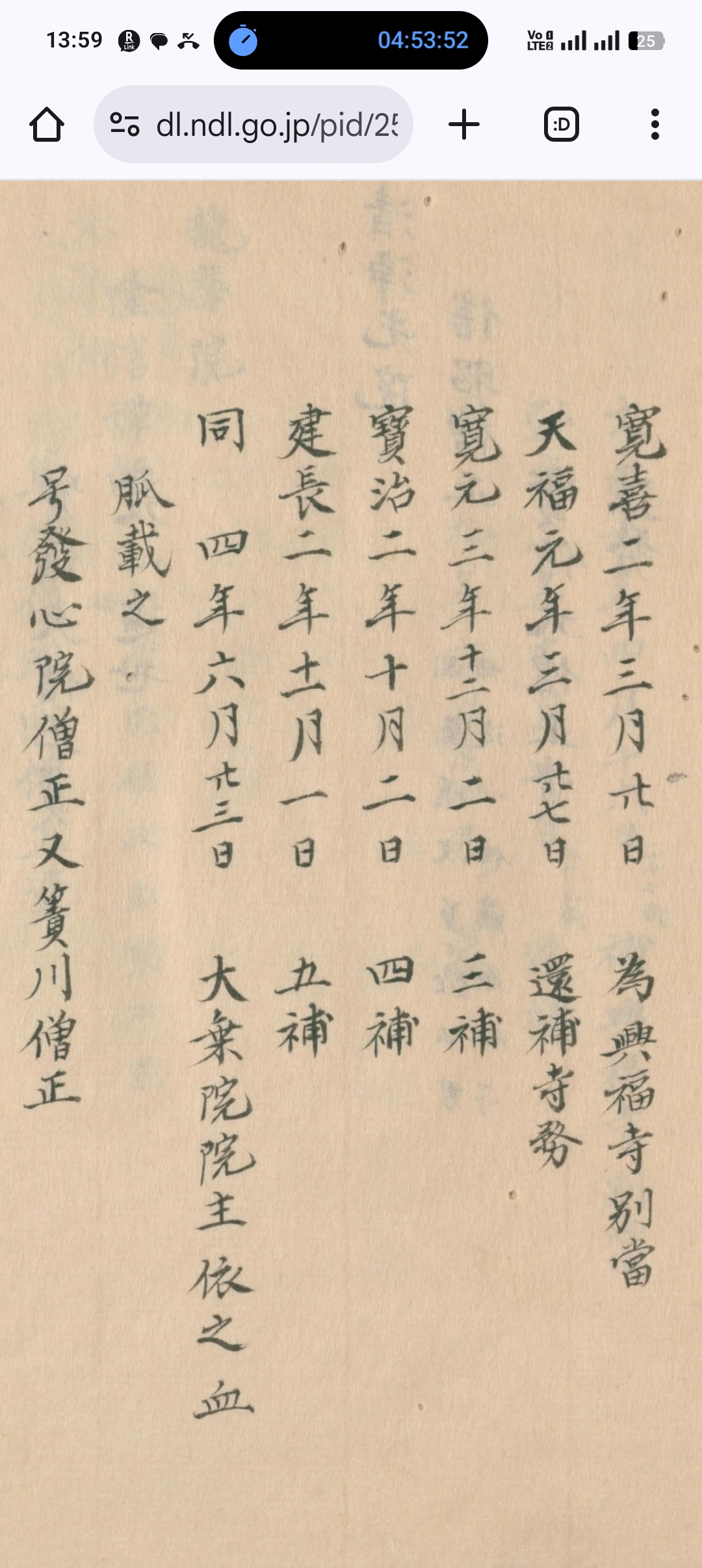 大日本史料 第6編之8所収の法隆寺別當僧正能寬寂の記述。興福寺元亨三年補任小別當定範堯禪房得業西方院、建武二年補任小別當真操宗願房得業発志院、康永三年別當能寬他界、興福寺權別當僧正能寬を示す寺社人事史料。