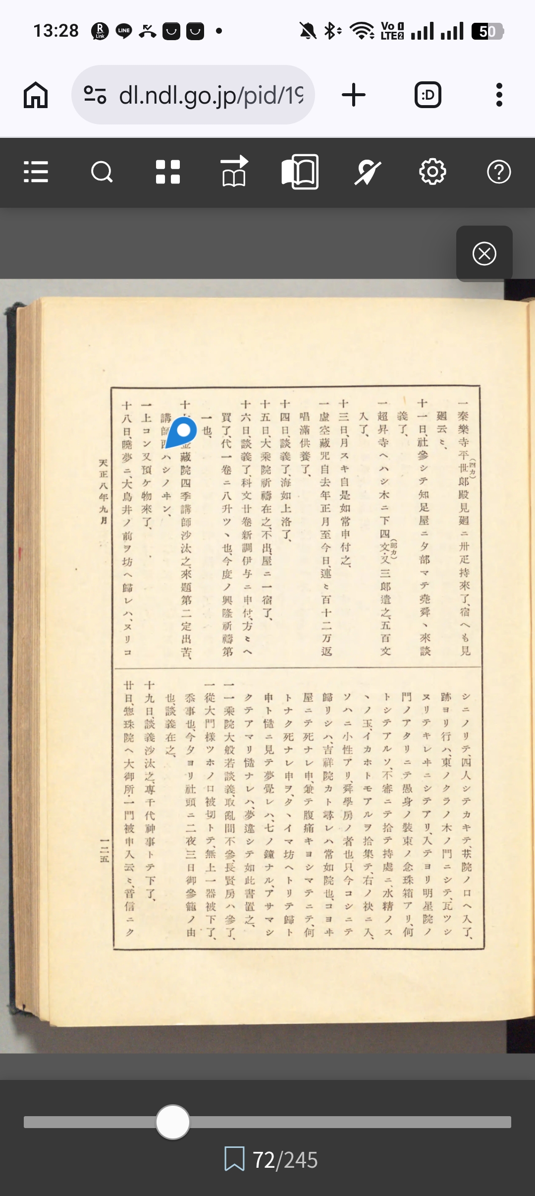 多聞院日記 第5巻所収の天文二年八月記述。瓦釘盜人糺問、一切經納所相論落居で奥発志院の御遠慮・半分仰付・納所得分・補任料の沙汰を示す院家権能史料。
